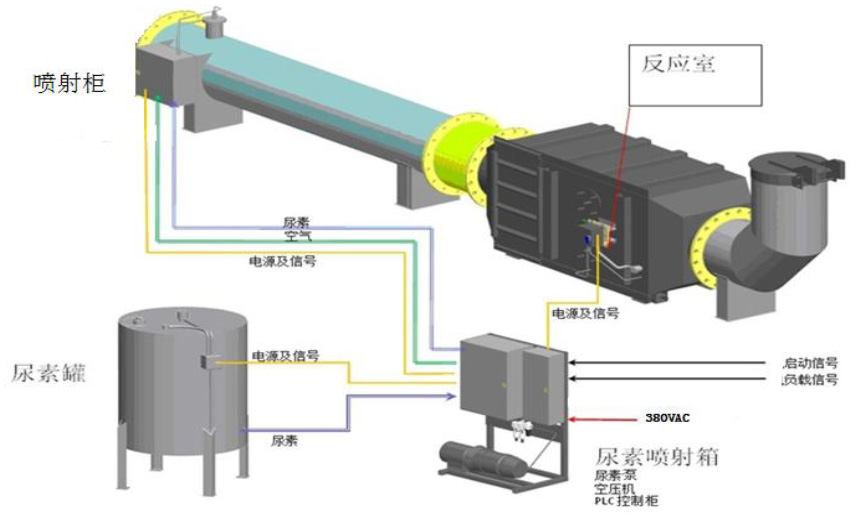 煙氣脫硝系統主要由:SCR反應器、控制系統、煙氣監測系統、還原劑供給系統、和壓縮空氣輔助系統組成,示意圖如下:
